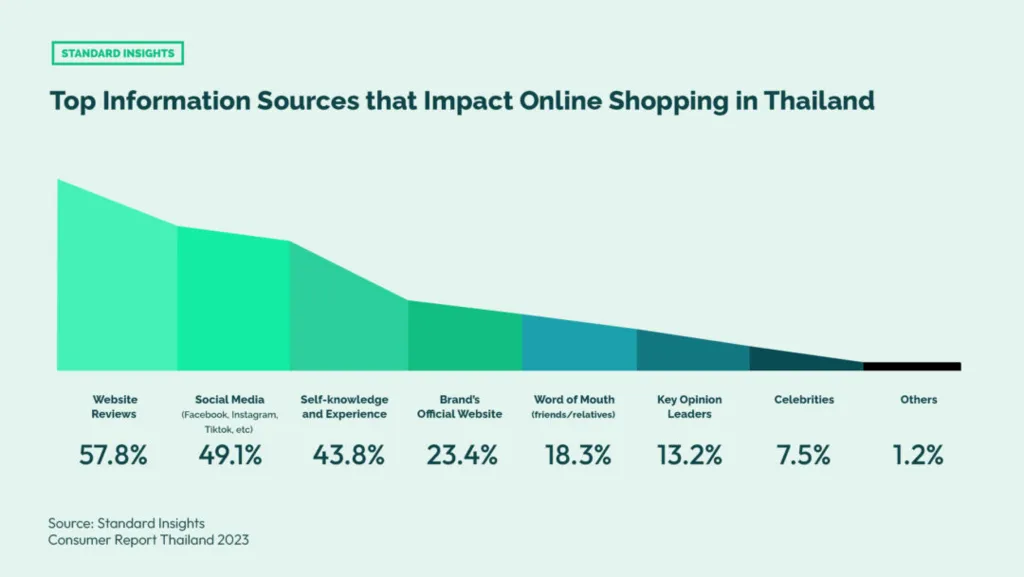 Mobile commerce is the backbone of Thailand’s e-commerce surge. 95% of Thai consumers shop via smartphones, and 60% use e-commerce apps as their main way to buy products. This mobile-first behavior shows that shopping is no longer confined to desktops or stores—it’s happening everywhere, all the time.