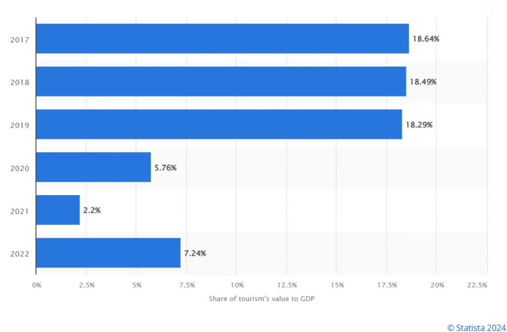 Thailand, with its breathtaking landscapes, rich cultural heritage, and vibrant cities, has long been a magnet for tourists from around the globe. The industry of tourism impact Thailand’s economy greatly, as it is significantly contributing to GDP, employment, and overall economic development. Before the pandemic, tourism contributed approximately 18.29% to Thailand’s GDP, and after fully reopening for tourism, the sector contributed 7.24% of Thailand’s GDP in 2022. This article examines the economic impact of tourism in Thailand, highlighting key tourism sectors, industry challenges, and strategies for long-term tourism growth.