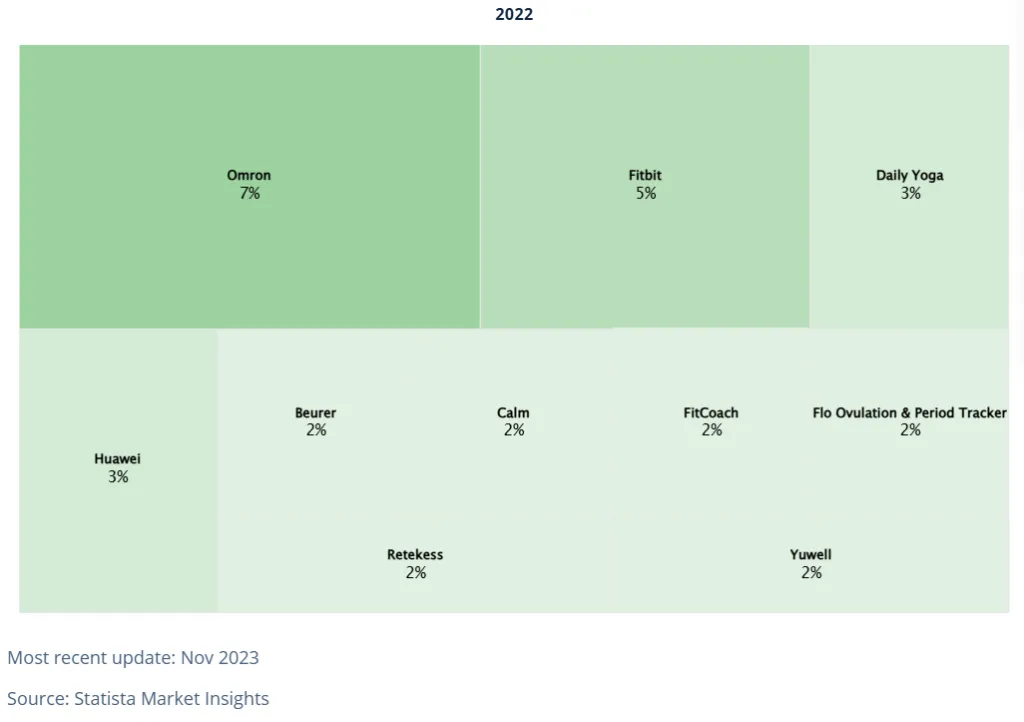Several key players are making significant impacts in Thailand’s Digital Health market. According to data reported in 2022 and updated in November 2023, notable brands and their market shares include:
