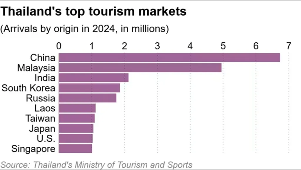 The consequences of Thailand tourism safety concerns are not just visible in arrival numbers. China’s reduced tourist flow impacts revenue, too. Chinese tourists typically spend more and stay longer than others, meaning their absence hits hotels, restaurants, transport, and tour operators harder.